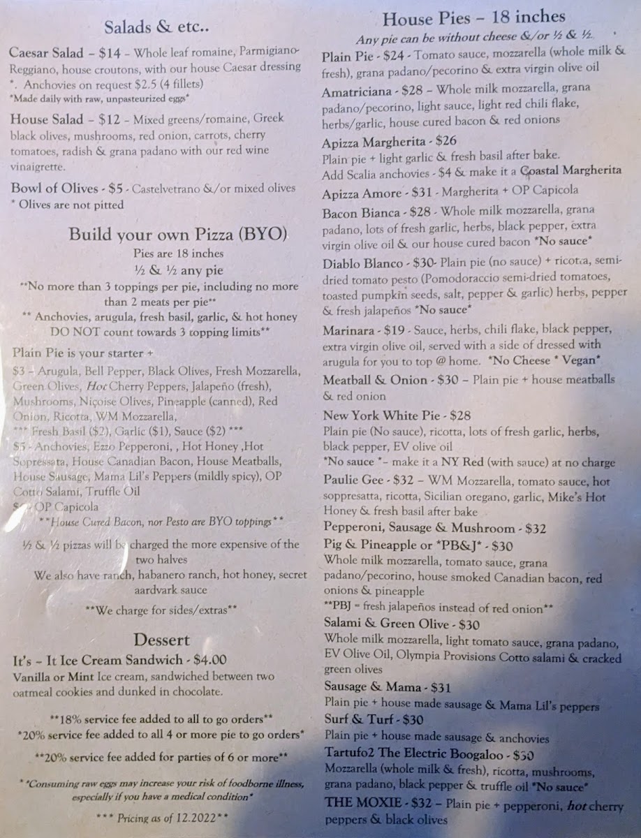 Welcome to Apizza Scholls, a gem located on Hawthorne Boulevard in Portland, Oregon, where classic Neapolitan pizza meets modern culinary finesse. The menu is crafted with an emphasis on quality ingredients and traditional techniques, ensuring a delightful experience with every bite.